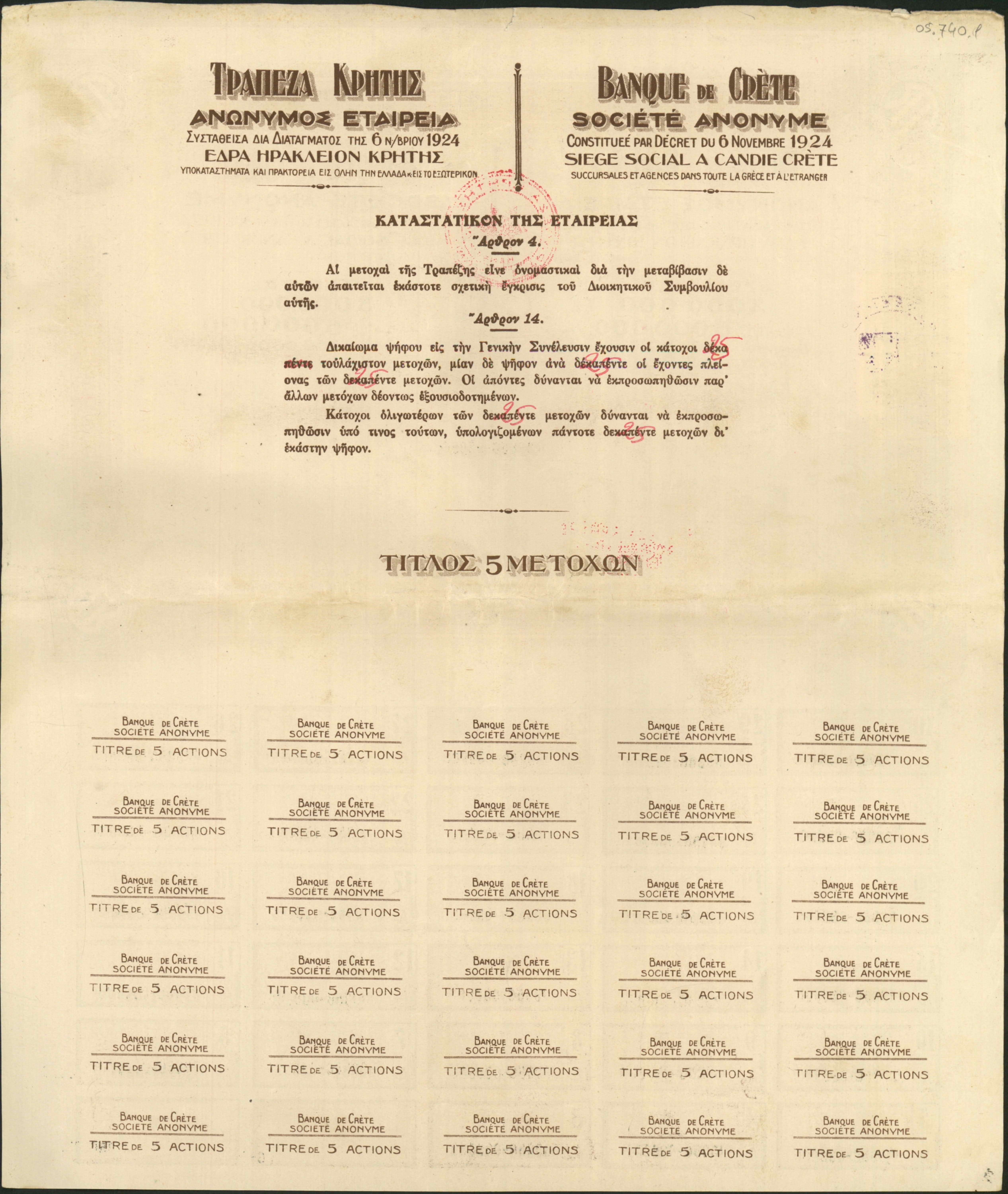 Stock certificates/Μετοχές