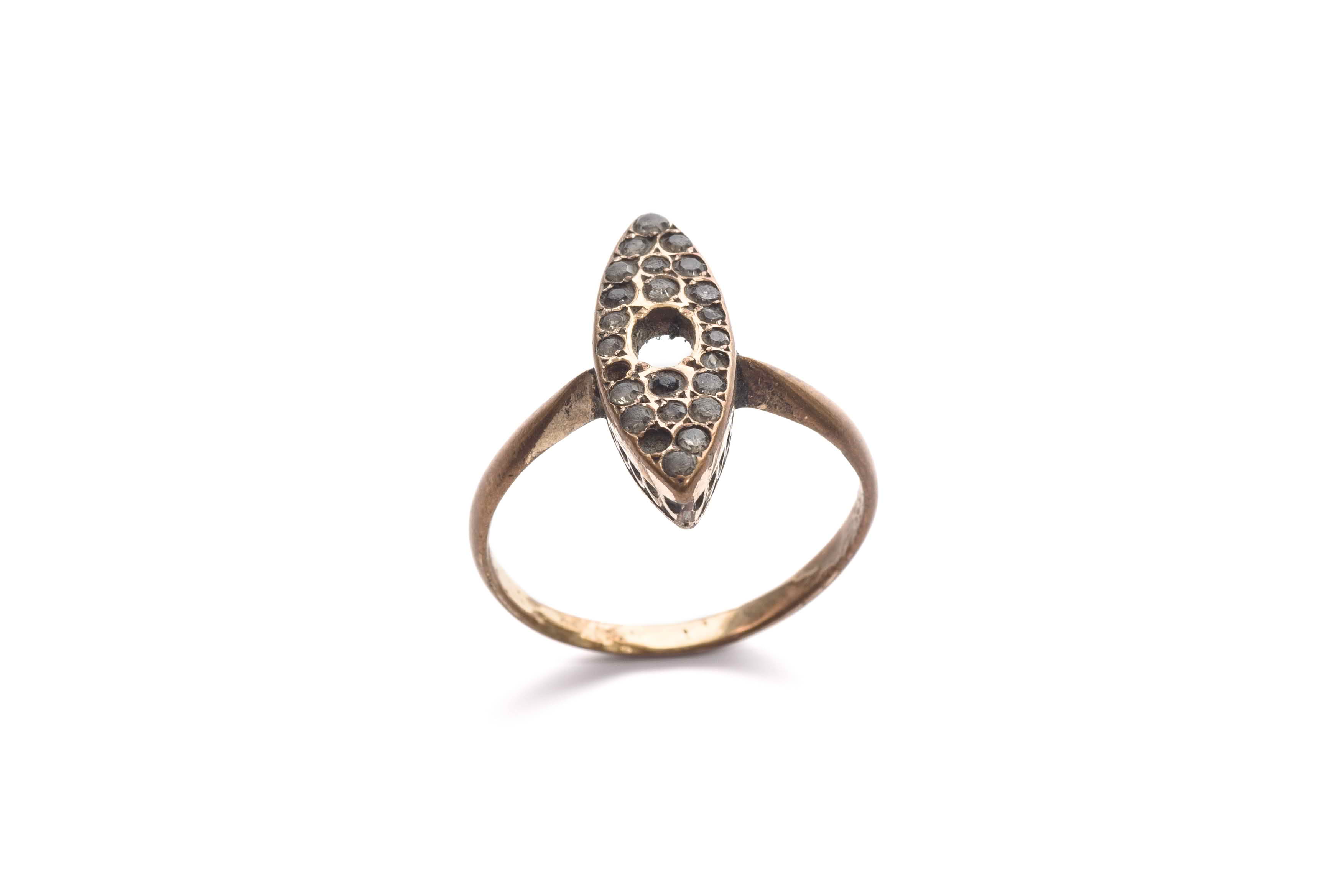 | dc.description | Woman's gold ring, with navette-shaped bezel set with twenty-two small diamonds. | |