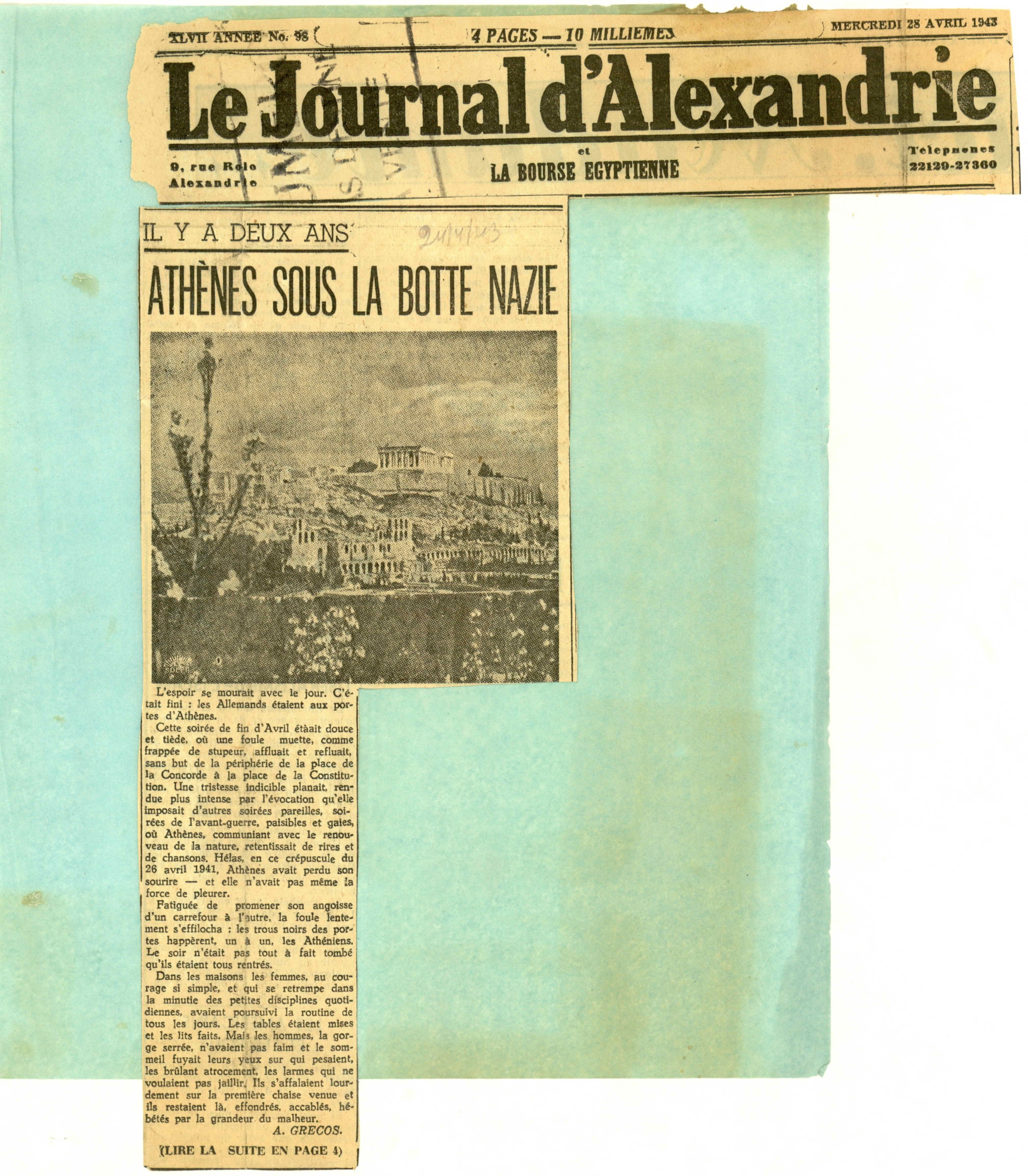 "Le journal d'Alexandrie et la bourse égyptienne" newspaper clippings, April 28th, 1943, No.98.