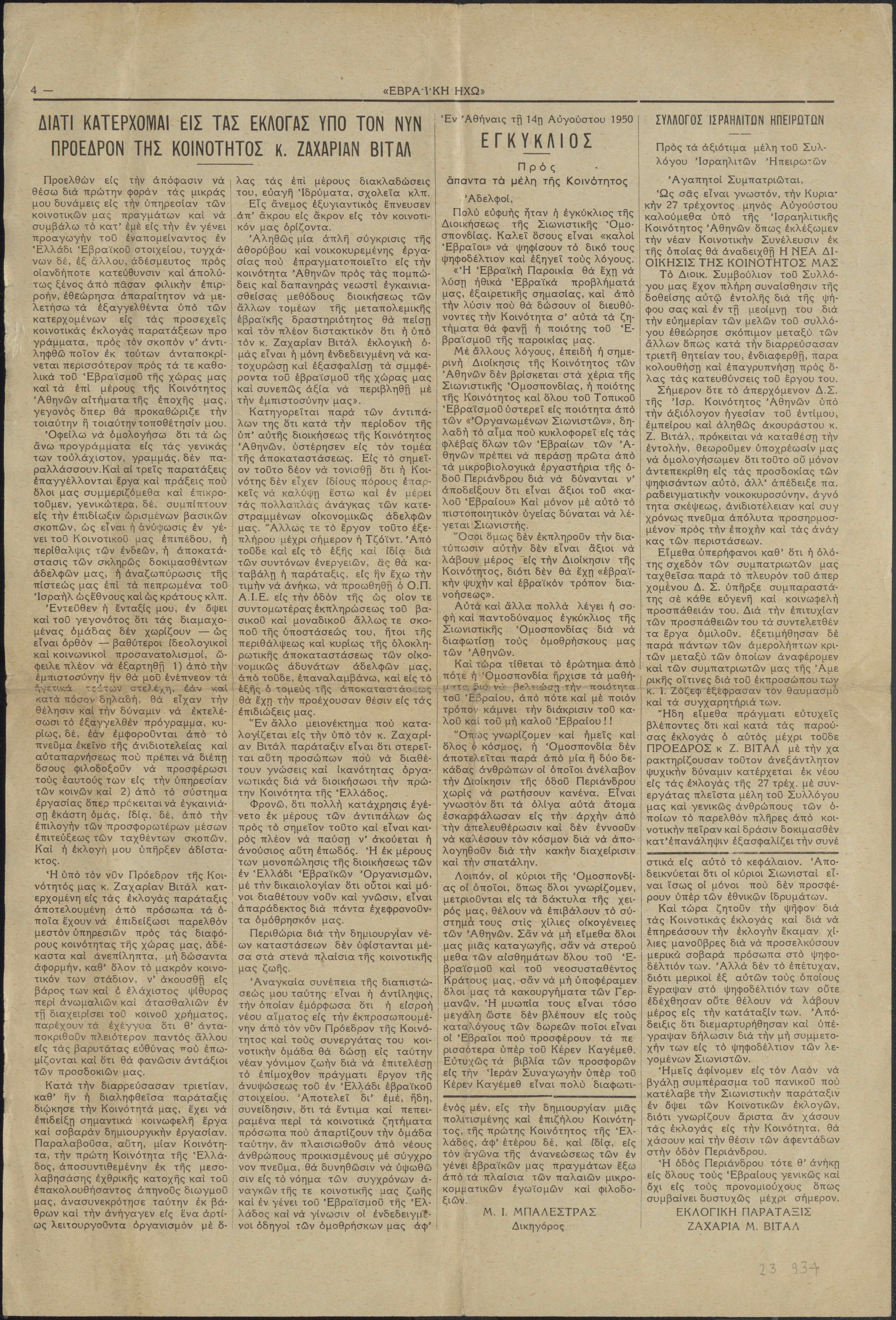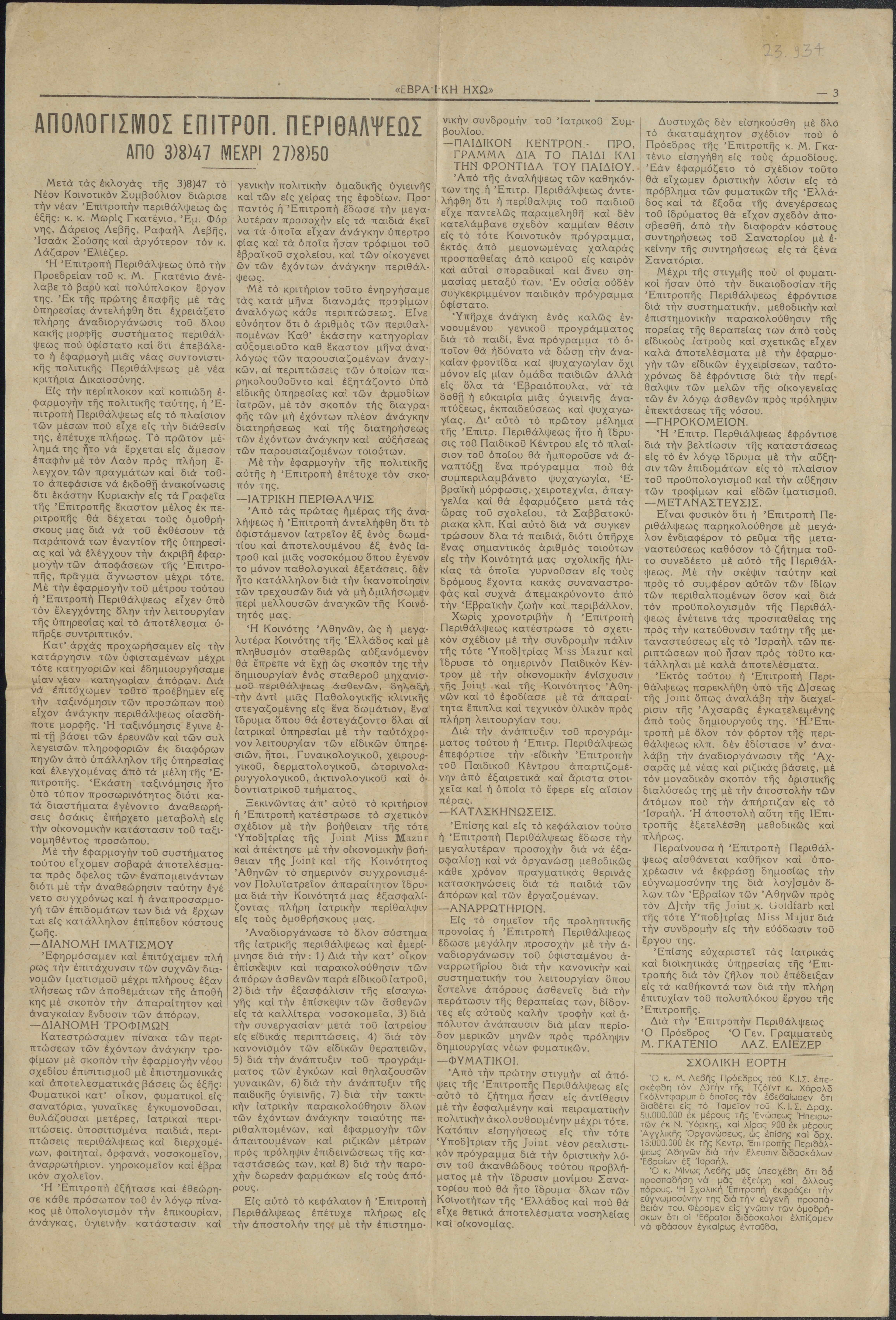 Press, newspaper, Jewish press, Jewish newspaper, post war life in Greece, Jewish Community of Athens, Jewish Communities of Greece