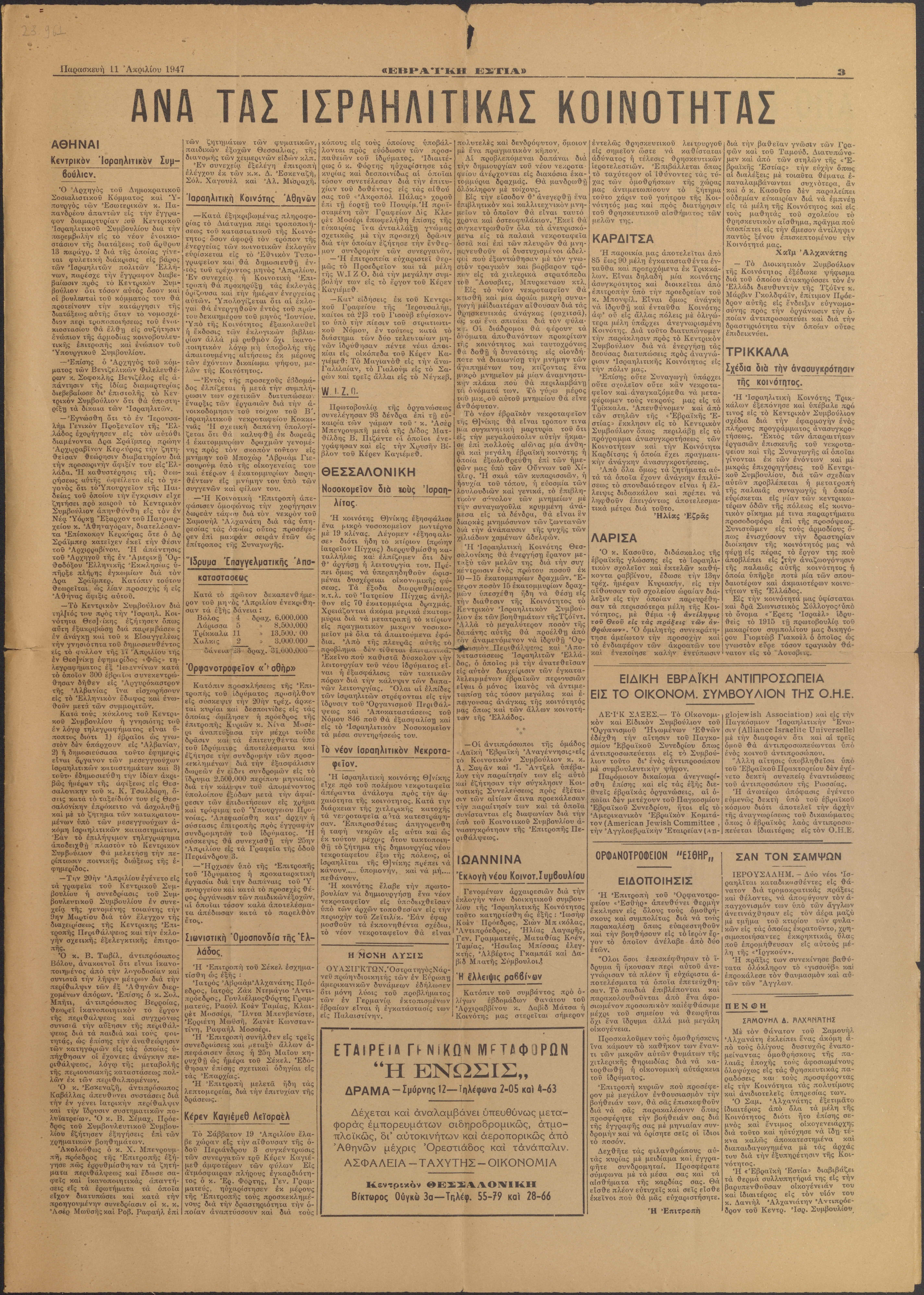 Press, newspaper, Jewish press, Jewish newspaper, post war Jewish life in Greece