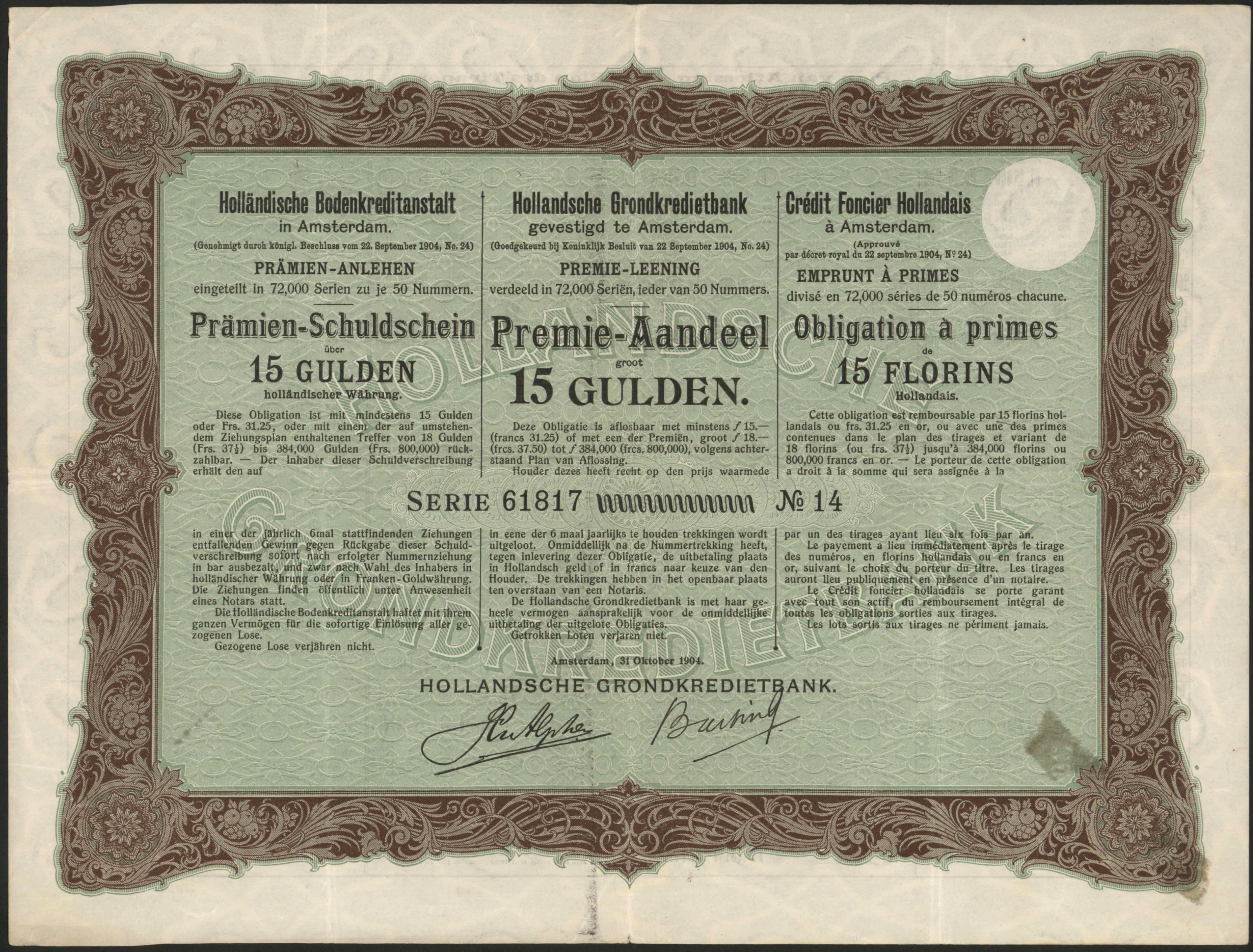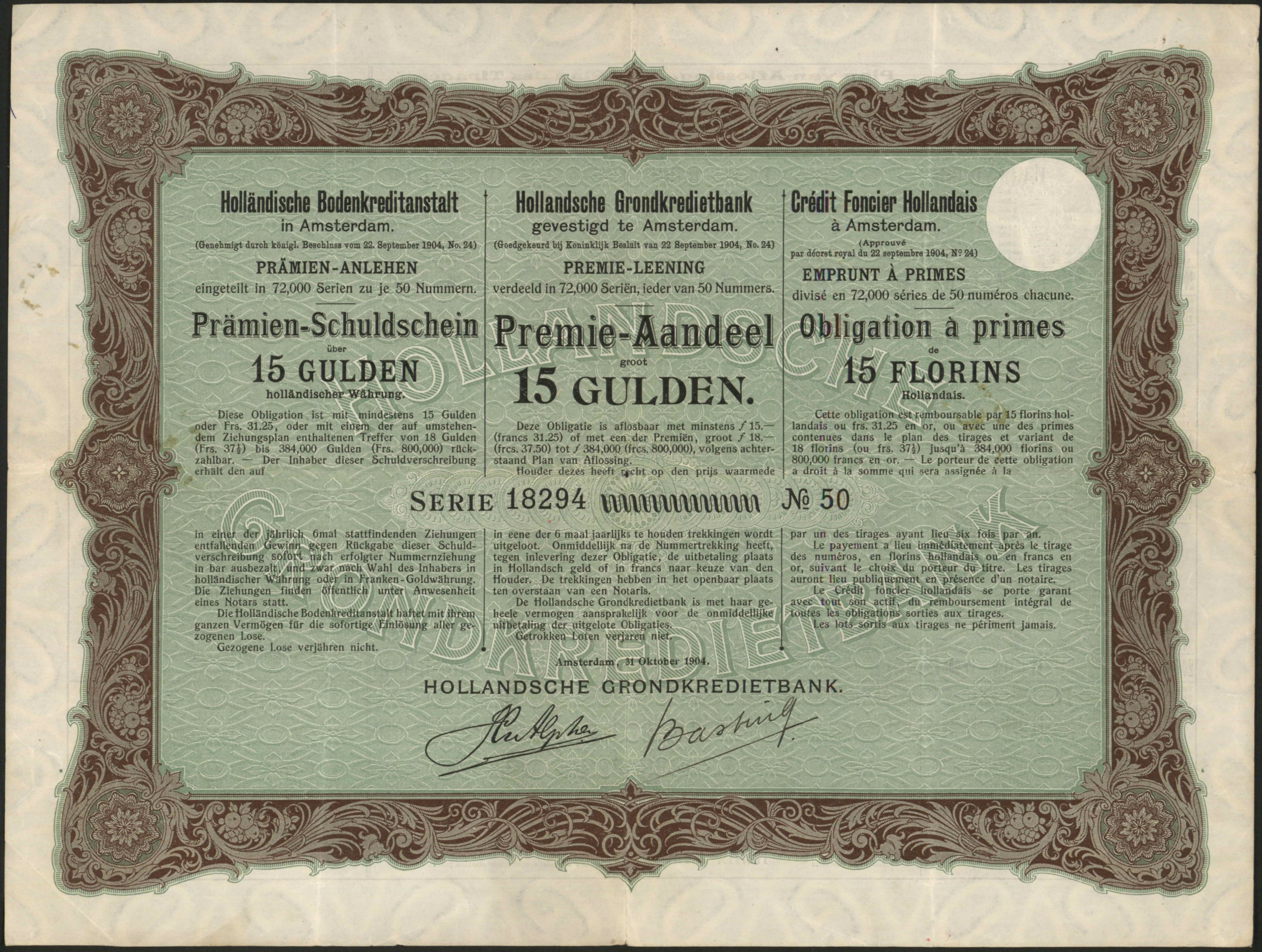 Bonds and an obligation, issued by the Dutch Credit Bank in Amsterdam.