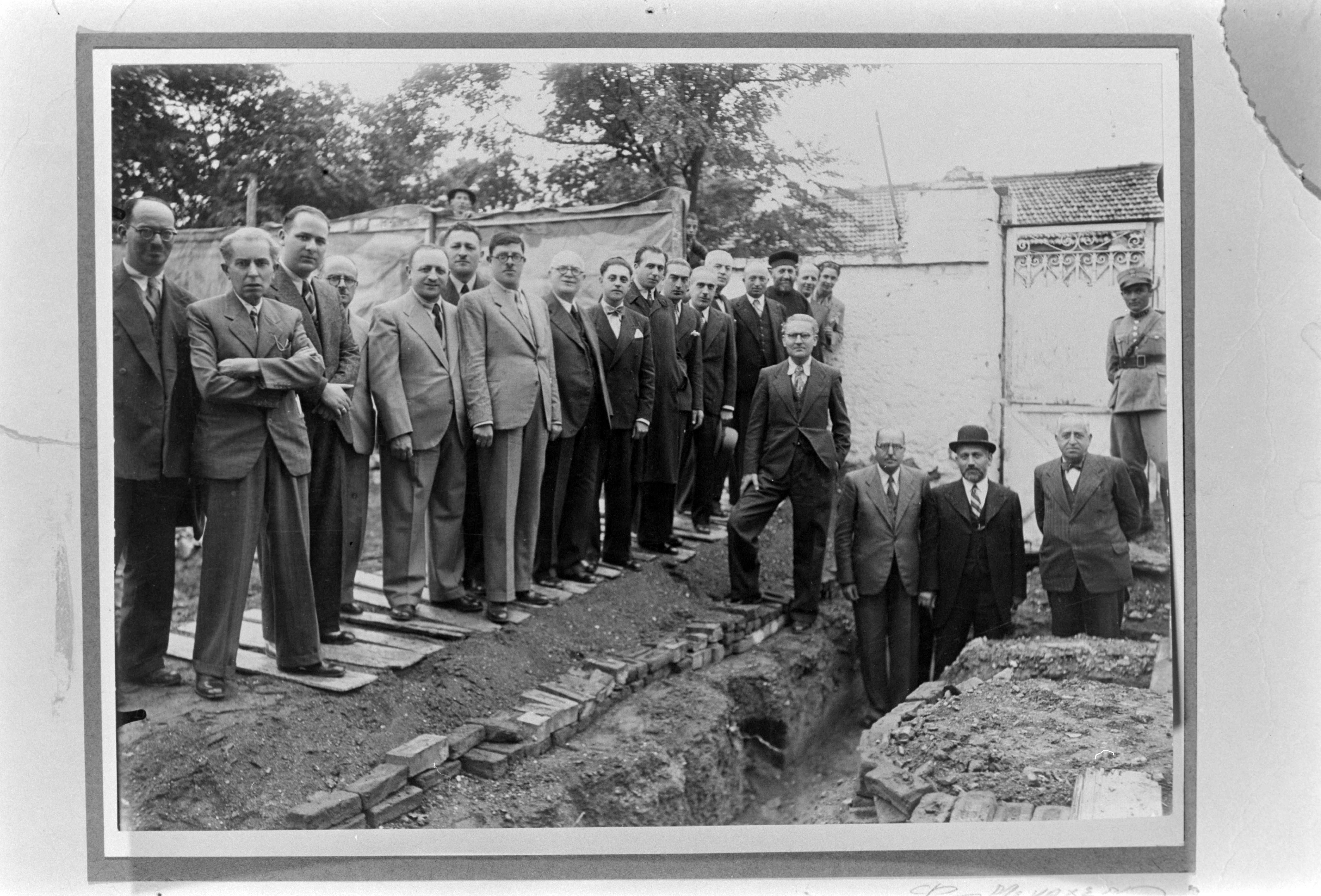 Photograph of a group at the foundations of Hirsch Hospital in Thessaloniki.