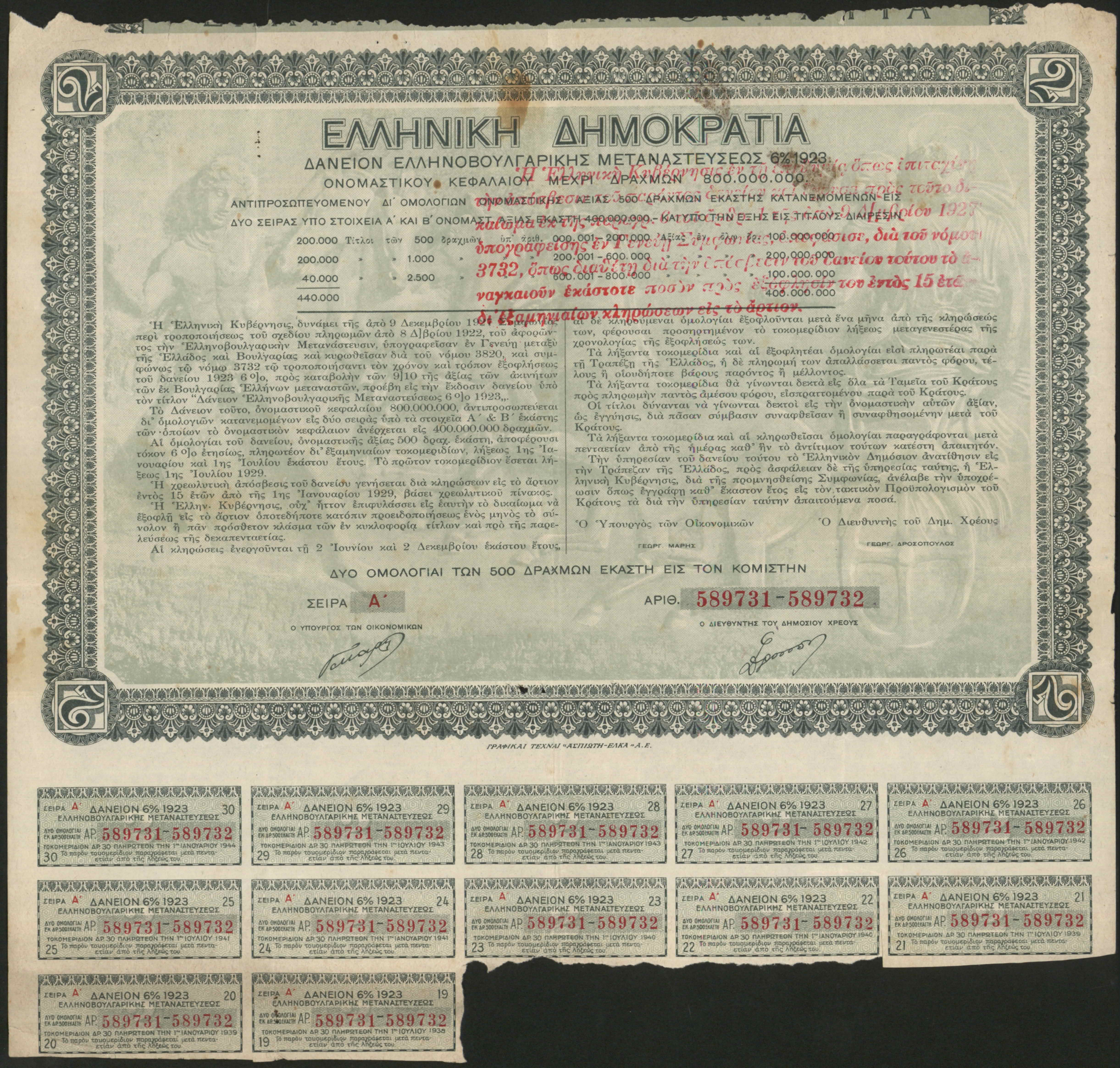| dc.description | Bond and obligations, issued by the Democracy of Greece, concerning the properties of Greek immigrants from Bulgaria, with coupons. | |