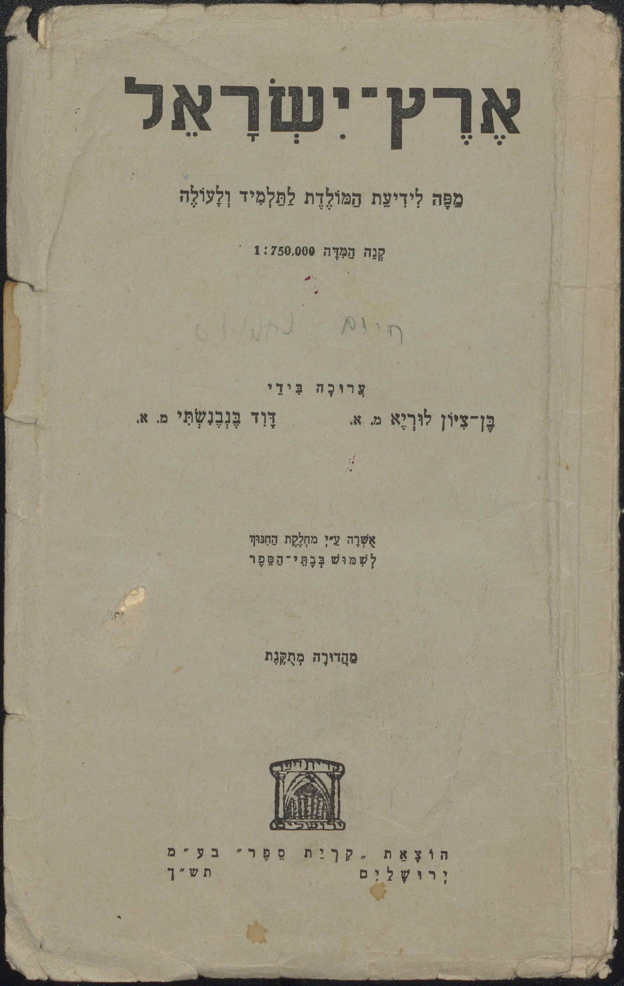 Map of Eretz Israel, published by Kiriat Sefer, in Jerusalem, that belonged to Mordehai Joseph Battino.