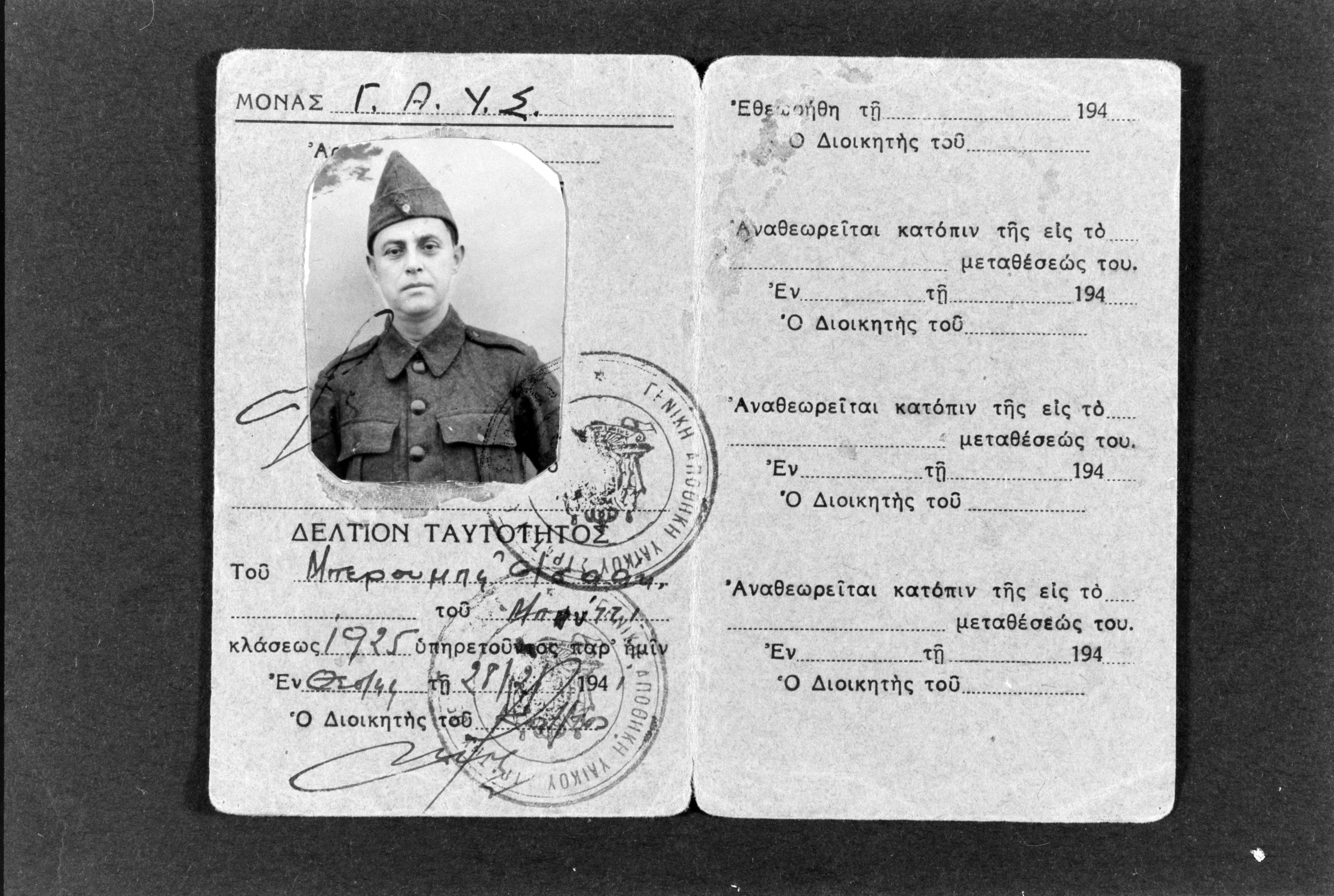 Military ID card of Isaac Benrubi, issued in Thessaloniki in 1941