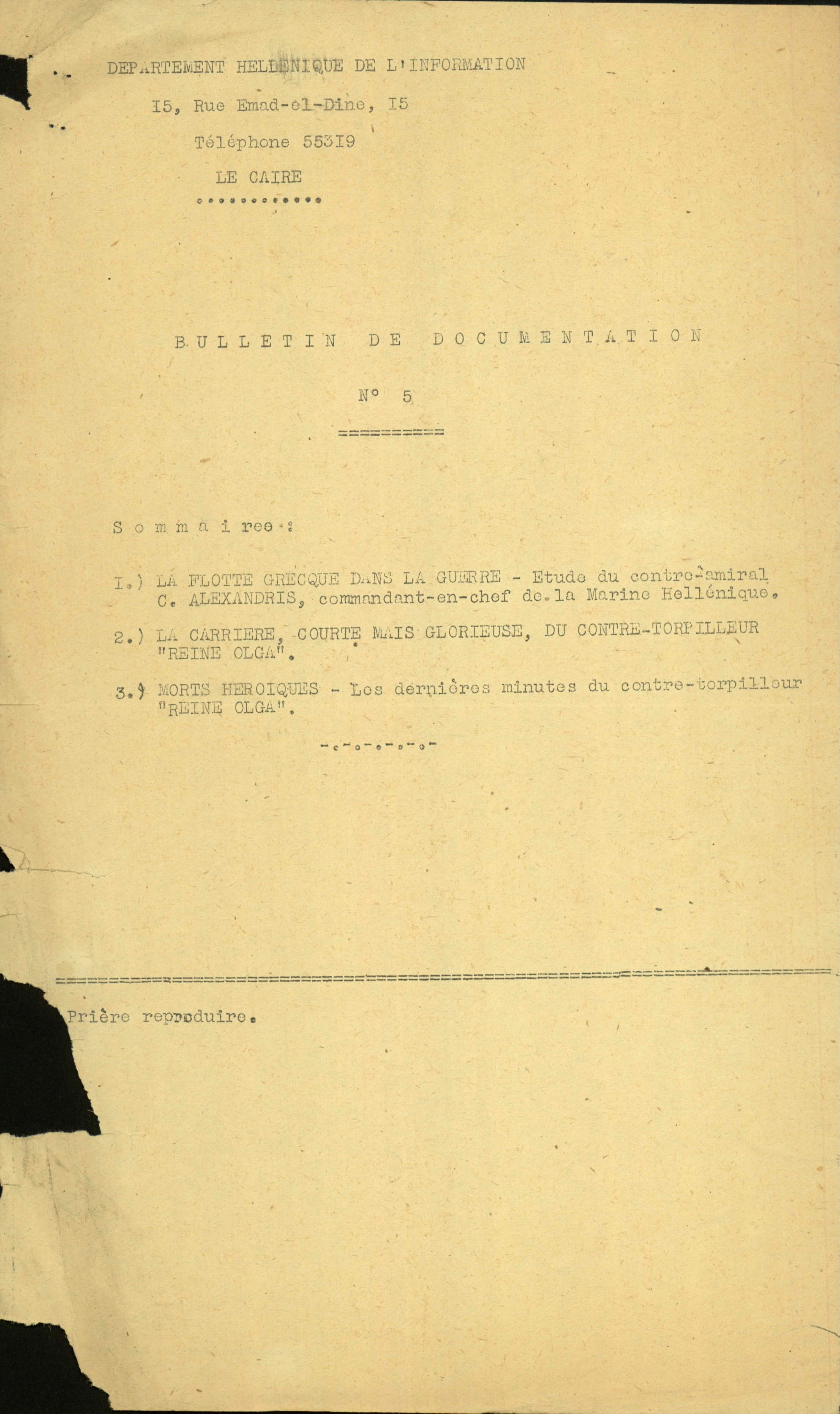 Documentation Bulletin No. 5, Greek Intelligence Service