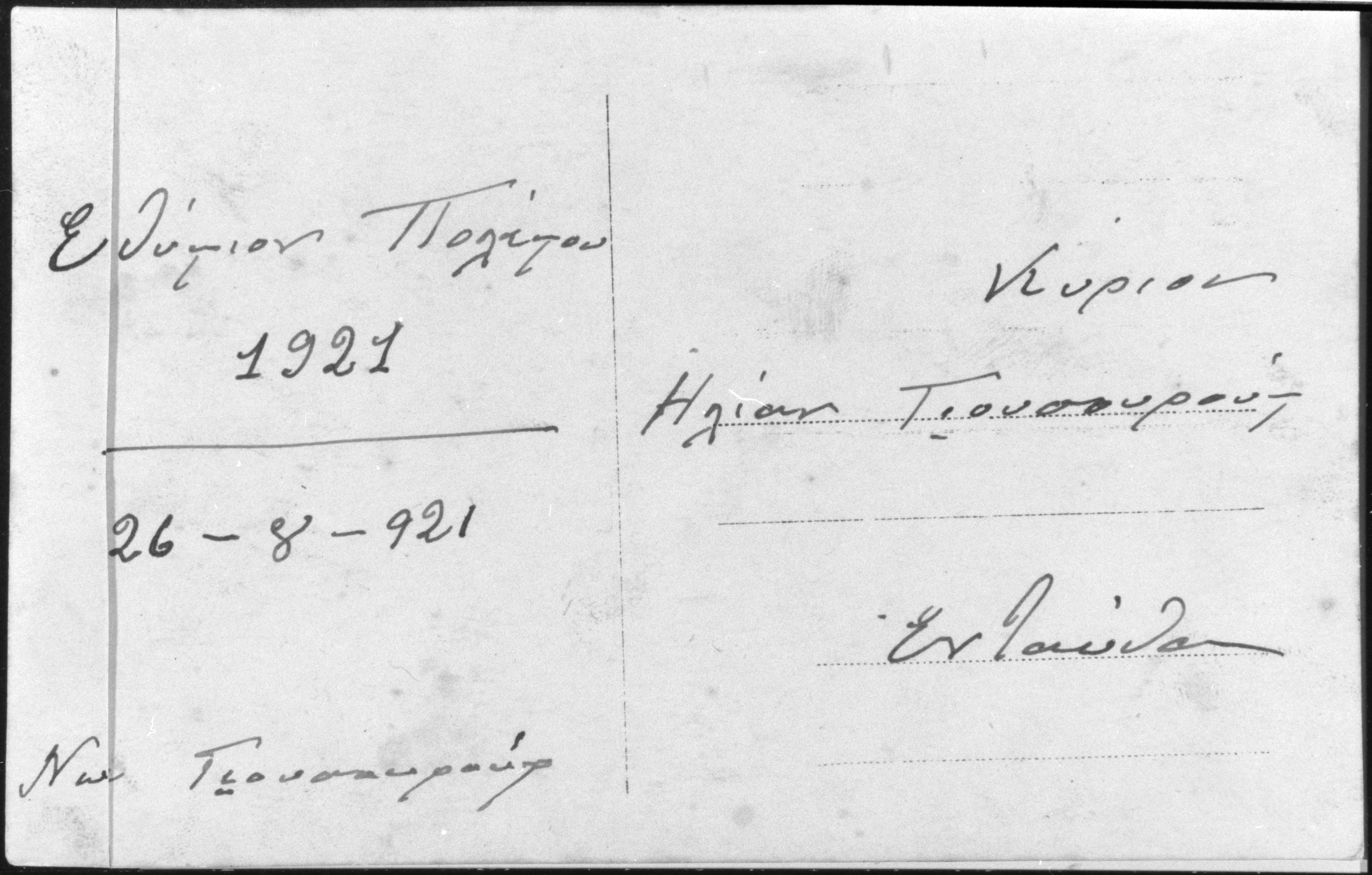 Noah Yusurum in war uniform - Asia Minor Campaign, 1921 (backside)